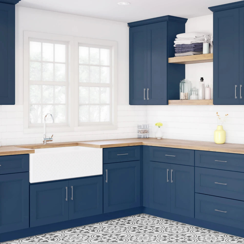Experience the strength and character of Elegant cabinets. Their wide shaker style and full overlay are complemented by robust wide rails, adding a touch of timeless charm and elegance to any kitchen or bath, whether traditional or contemporary.