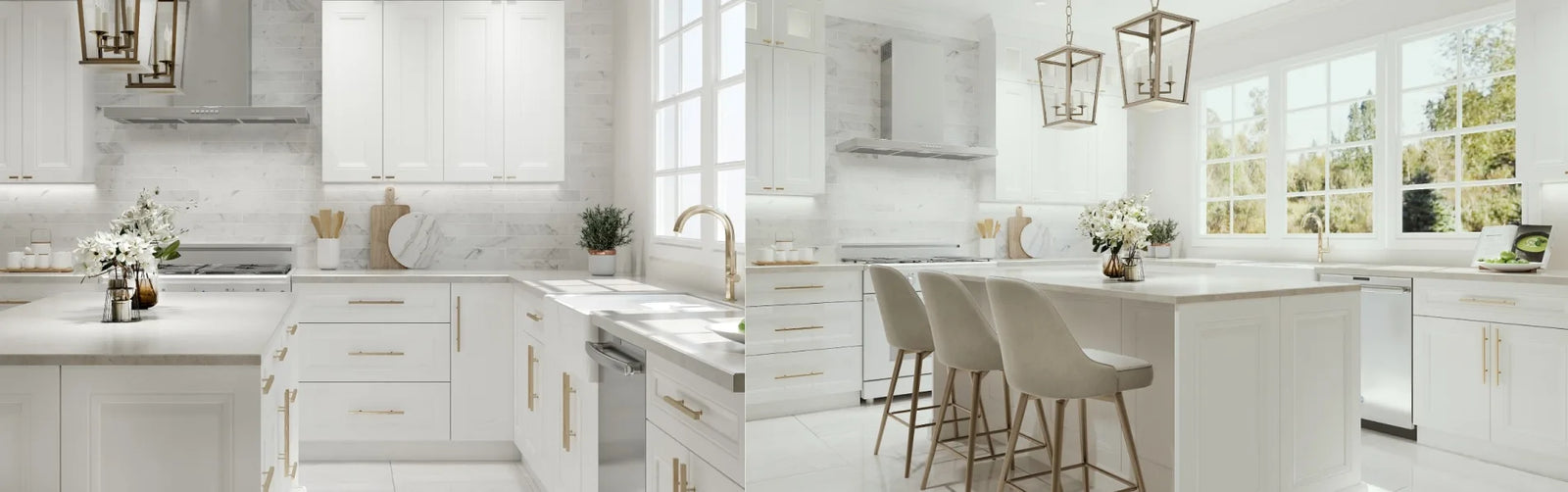 The Richmond door style offers a touch of refined elegance with its mitered flat panel design and delicate accent molding. Available in a warm light grey stain or a crisp white painted finish, Richmond perfectly complements transitional kitchen designs.