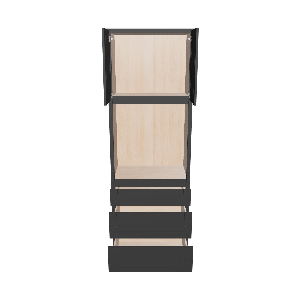 Modernform Cabinet Onyx Black Shaker 33" W X 96" H X 24" D Oven Cabinet With 3 Drawers
