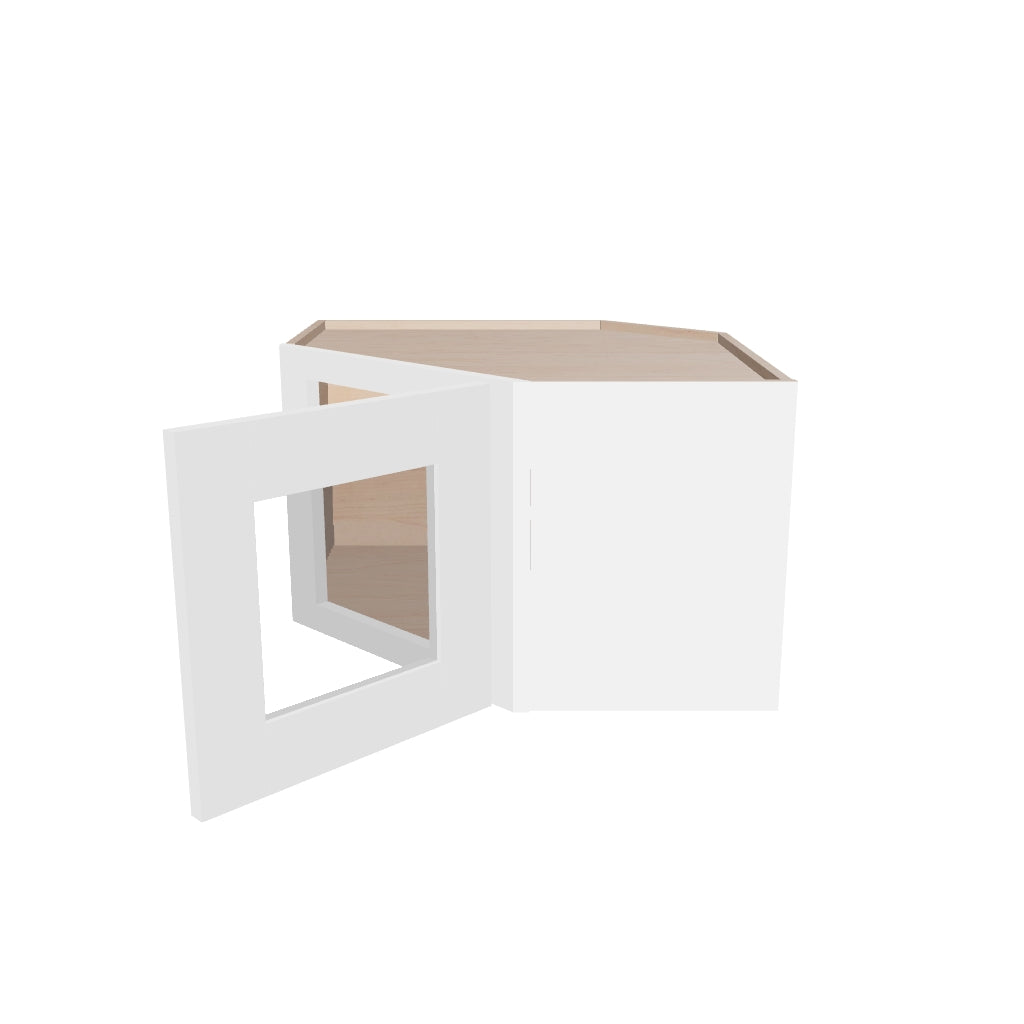 Modernform Cabinet White Shaker 24" W X 15" H X 12" D Diagonal Corner Glass Door Wall Cabinet
